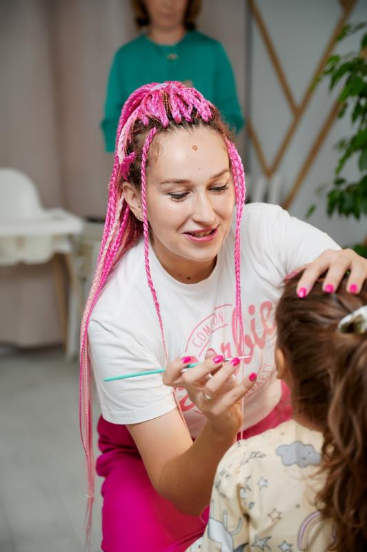 В первый час праздника идеально пригласить аквагримера. Сложные техники рисования, множество обучений, безопасные краски, все для того чтобы порадовать ребят на празднике! Гример приезжает вместе с бьюти чемоданом, который вызывает бурю эмоций у детей! Подойдет не только для девочек, но и для мальчиков. Даже взрослые обожают делать блеск тату, которые держатся 14 дней после нанесения.